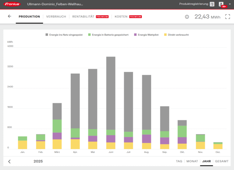 - Jahresproduktion: ca 22500kWh