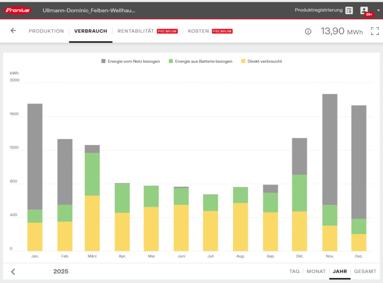 Die Produktions- und Verbrauchs-Grafiken oben stammen von einer Anlage in Felben-Wellhausen TG:
