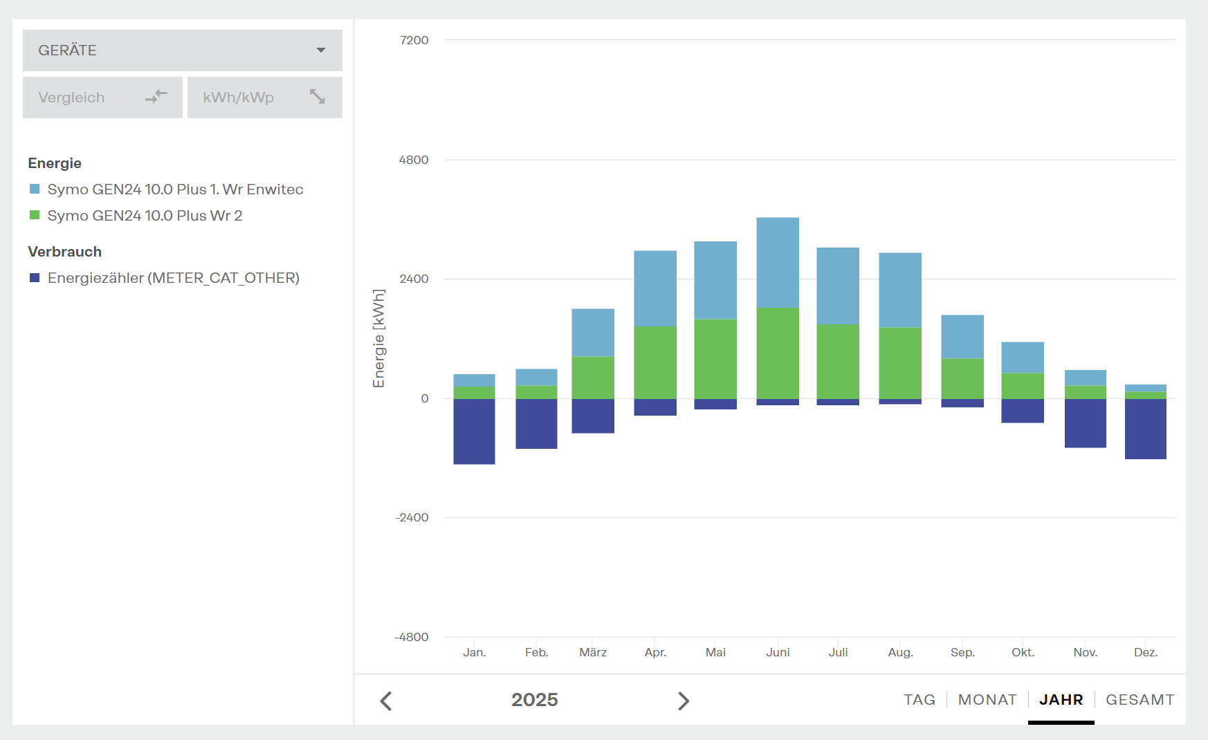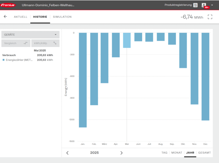 Die realen Kosten sind natürlich günstiger, da die PV Anlage einen Beitrag leistet. Der minimale monatliche Autarkiegrad lag bei 23% im Dezember 2025.